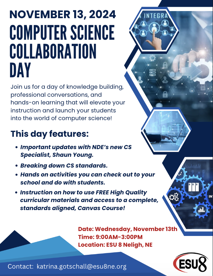 | Description | | Join us for a day of knowledge building, professional conversations, and hands-on learning that will elevate your instruction and launch your students into the world of computer science!